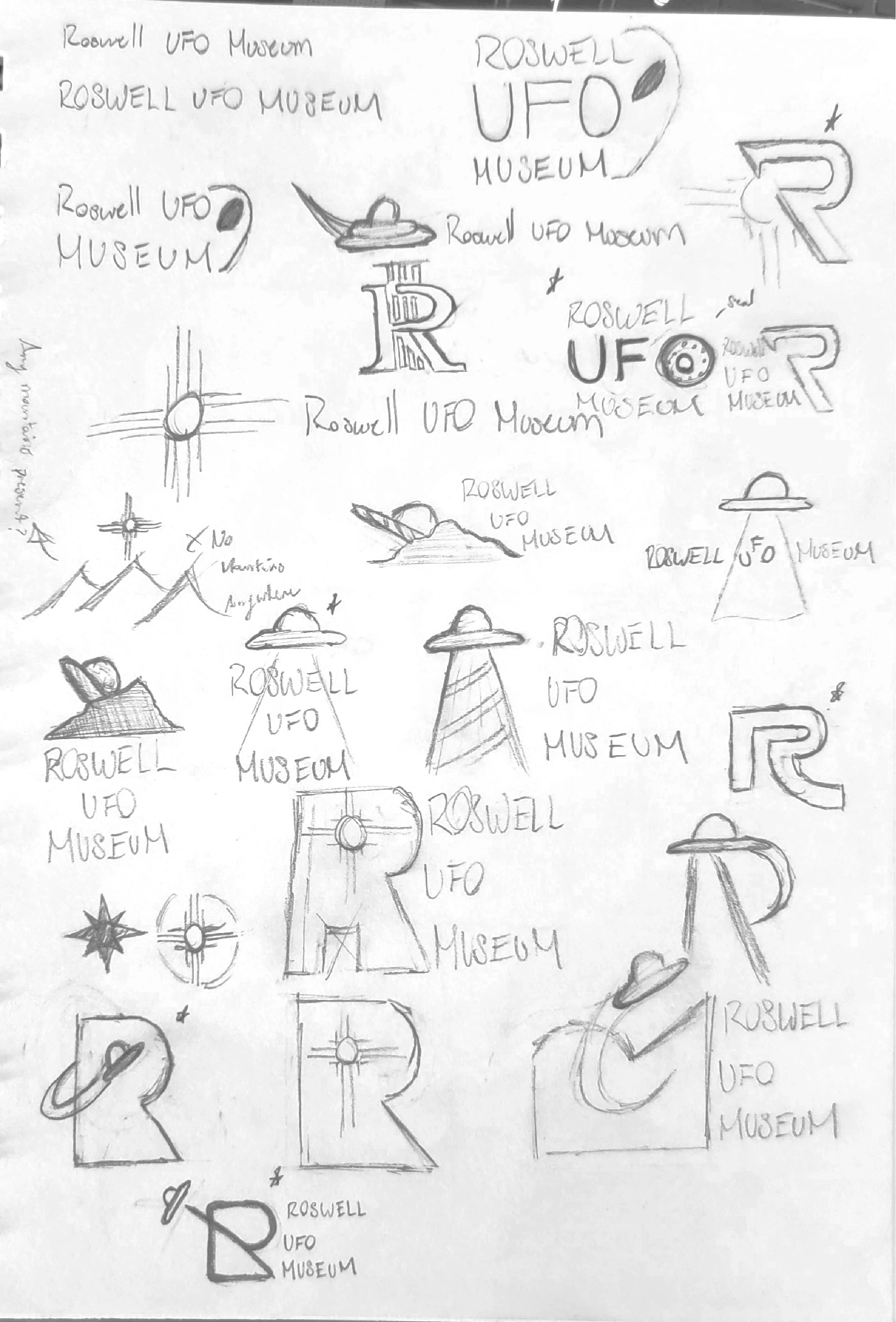 For a graphic design course, I was tasked with selecting a niche or unique museum and exploring how its visual identity could be refreshed. I chose the International UFO Museum & Research Center in Roswell, New Mexico, a museum founded in 1991 that documents UFO sightings, the Roswell Incident, and other unexplained phenomena. The assignment challenged us, as a class, to think critically about how a museum’s identity communicates its mission, organizes its visual elements, and engages visitors.