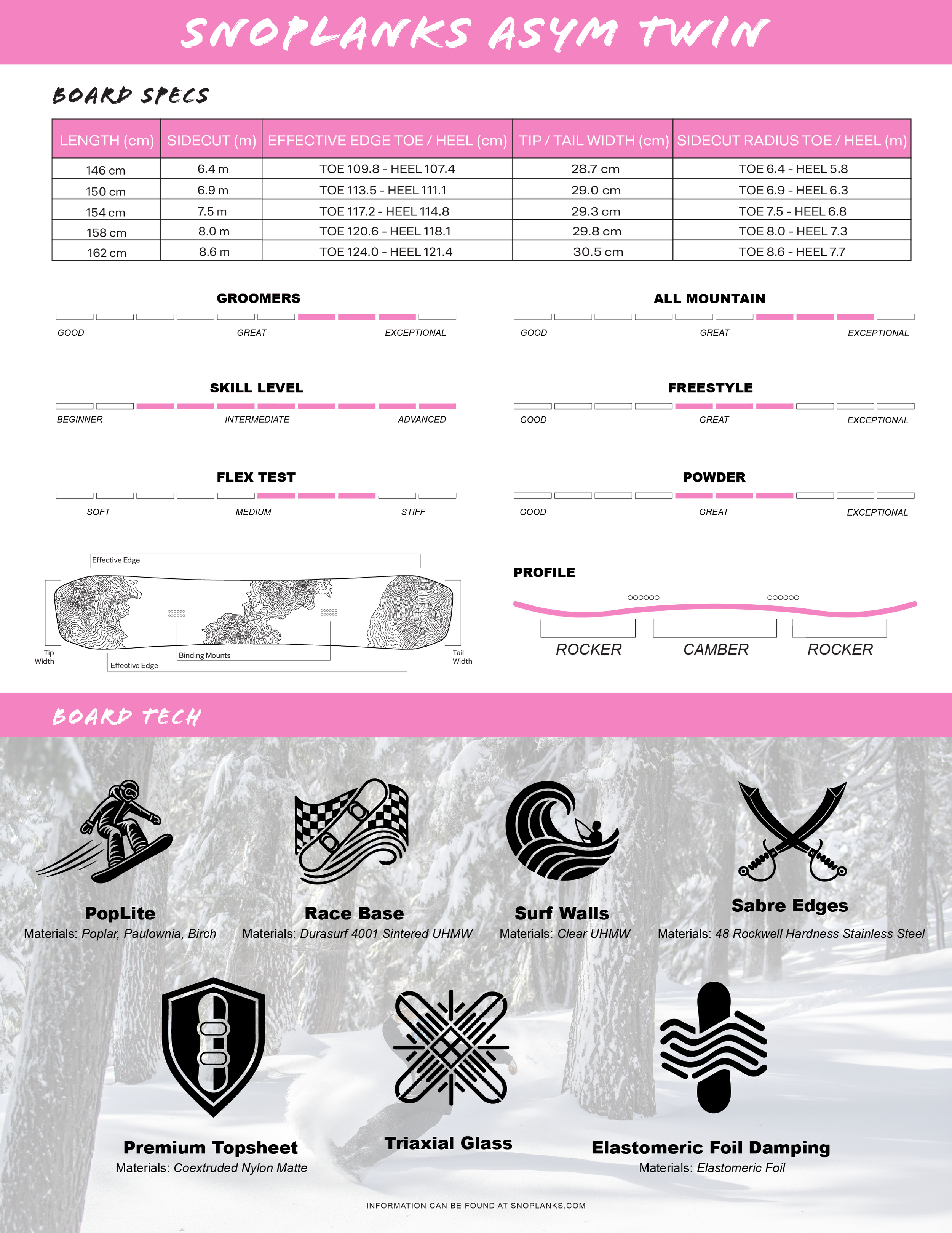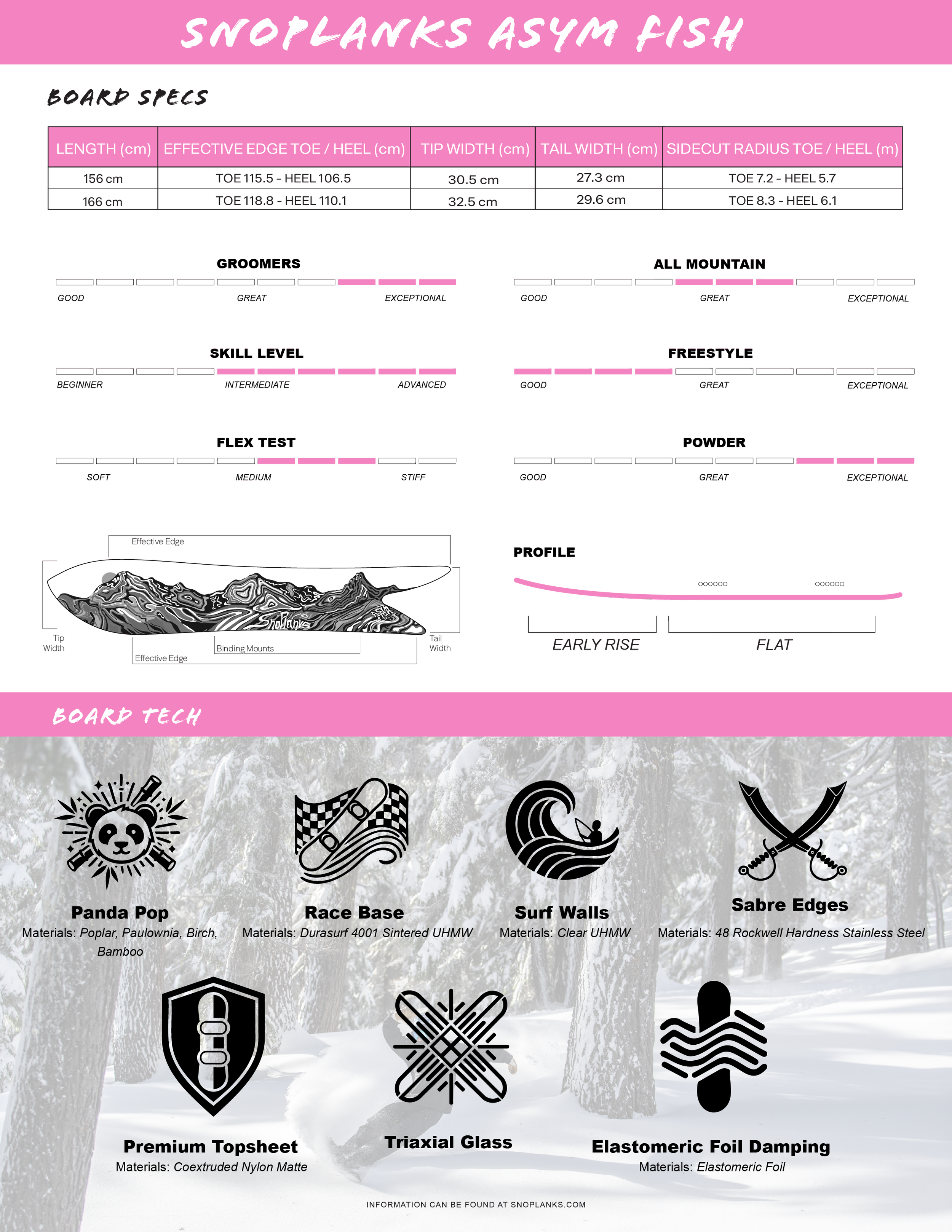 Developed visual rating bars for terrain, skill level, flex, and riding style
